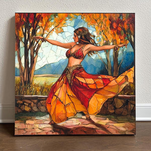 Transform your space with 'Autumn Stained Glass V', a stunning illustration design enriched by vibrant orange tones. Inspired by the beauty of belly dance, this exclusive piece embodies culture, movement, and elegance. Whether you're decorating your home, curating a personal collection, or searching for the perfect statement piece, this premium-quality item is designed to captivate and inspire. Available in size/type: 16 in x 16 in and SKU: CAN-BD-AUT-5117.